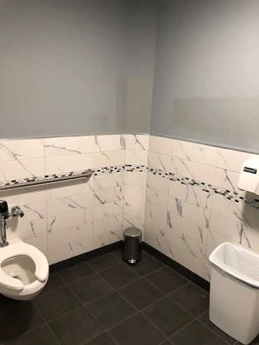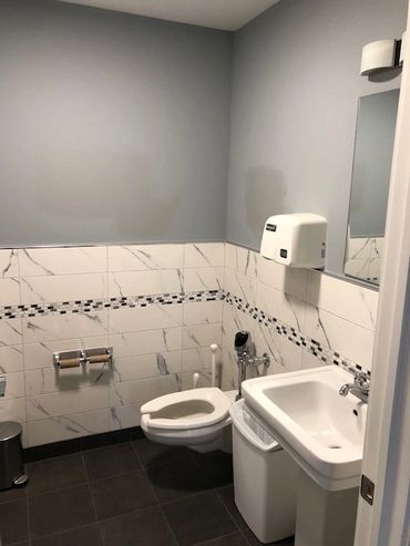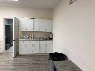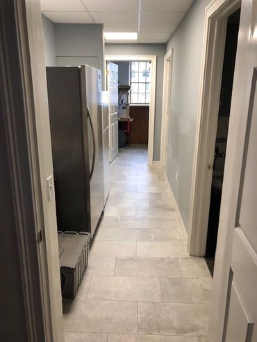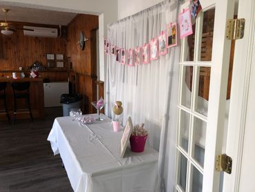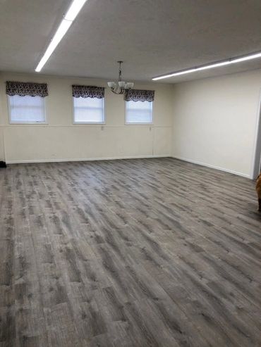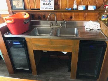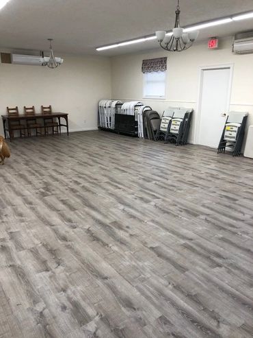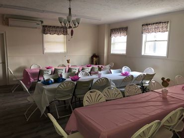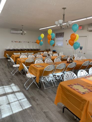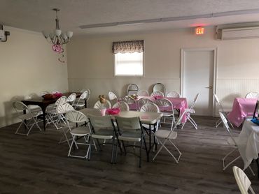· Large banquet room with serving area with sink included in rental is banquet tables (8) and (68) chairs.